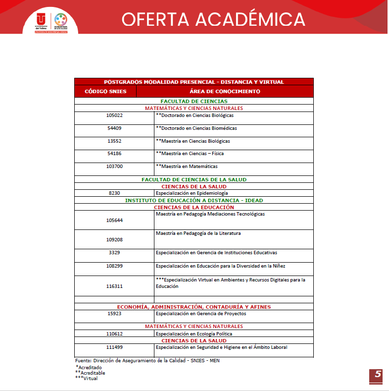Bienvenido al portal oficial de estadística de la Universidad del Tolima. Aquí encontrarás datos e información académica. Este portal está estructurado para ofrecer un panorama general de las estadísticas institucionales más relevantes que promuevan la transparencia y el acceso a la información, contribuyendo al conocimiento y a la toma de decisiones en pro de la misión de la Universidad del Tolima, que: “…Se considera como un ecosistema comunicacional, intercultural de aprendizajes; enfocada en el desarrollo de la ciencia, la investigación, la tecnología, la innovación, las artes, la cultura, el multilingüismo y la preservación del ambiente...”.